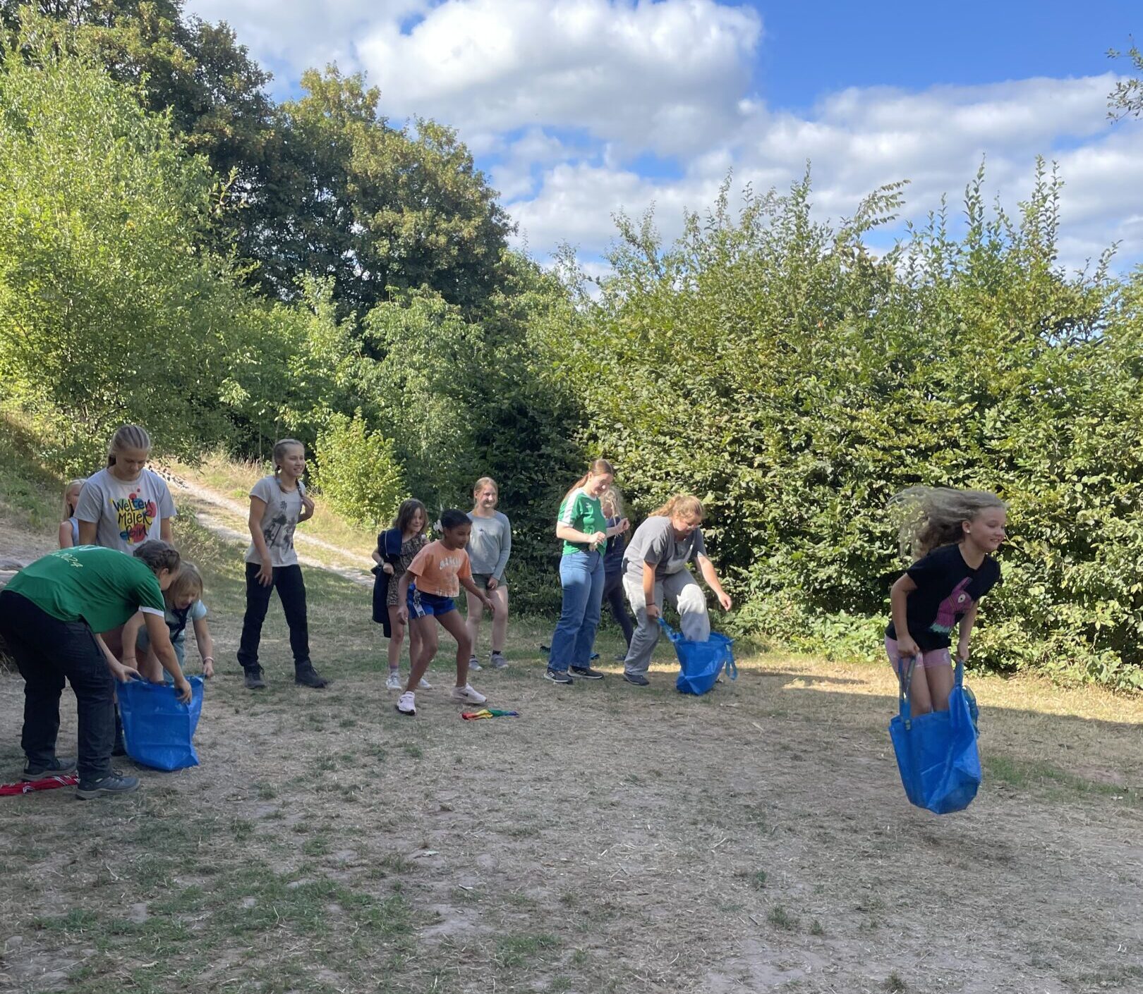 Einmal um die ganze Welt reisen, das wär’s doch! Das dachten sich auch die Stämme St. Barbara und Shenandoa und holten die Welt einfach auf den Zeltplatz. Nach dem Ausstellen von Reisepässen ging es los, es gab eine Länder-Olympiade, Lampions wurden gebastelt und in verschiedenen Spielen viele Kulturen kennengelernt. Auch die Küche brachte mit Poffertjes, selbstgemachtem Naanbrot und vielem mehr internationalen Flair ins Lager. Beim Hajk erkundeten wir einen kleinen Teil der Welt rund um die Burg Rieneck. Außerdem gab es einencBogenschießkurs und einen Besuch im Freibad. Und nach 8 Tagen ging es für alle mit vielen Einträgen im Reisepass und Erinnerungen im Rucksack zurück ins Ruhrgebiet.